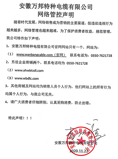 鄭重聲明:安徽萬邦特種電纜有限公司官方網站為:www_wanbangcable_com.kxjr.com.cn,除此之外無任何子網站或合作網站,其余均為假冒偽劣。電話:0550-7621728 13485756353 地 址:安徽省天長市滁州高新技術產業開發區經四路29號